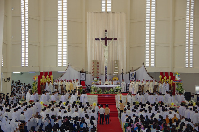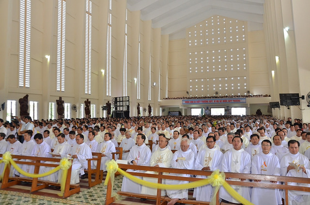 Thánh Lễ hôm nay được chủ tế bởi Đức Tổng Giám Mục Phaolô Bùi Văn Đọc cùng 29 giám mục, 3 viện phụ, 320 linh mục trong và ngoài giáo phận.