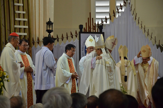 Đức Hồng Y nhắc đến kỷ niệm 2013 2 giáo phận Vĩnh Long và Mỹ Tho vắng giám mục. 2014 Mỹ Tho có giám mục. Tôi hỏi Vĩnh Long Đức Tổng Giám mục đại diện Tòa Thánh. .. sau nhiều tháng, cuối 2014 sao Vĩnh Long chưa có giám mục. Đức Tổng chọc tôi là Chúa Thánh Thần đi vắng và không biết đường về.