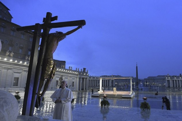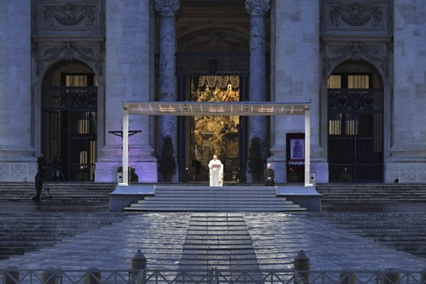 Đức Thánh Cha đã chủ sự buổi cầu nguyện lịch sử trong quảng trường hoàn toàn trống vắng những lại có đông đảo tín hữu tham dự từ khắp nơi trên thế giới tham dự. Ngài xin Chúa ban sức khỏe cho thể xác và an ủi trái tim. Sau khi chầu Thánh Thể, Đức Thánh Cha ban phép lành Mình Thánh Urbi et Orbi cho các tín hữu trong buổi cầu nguyện đặc biệt cầu cho thế giới trước đại dịch.