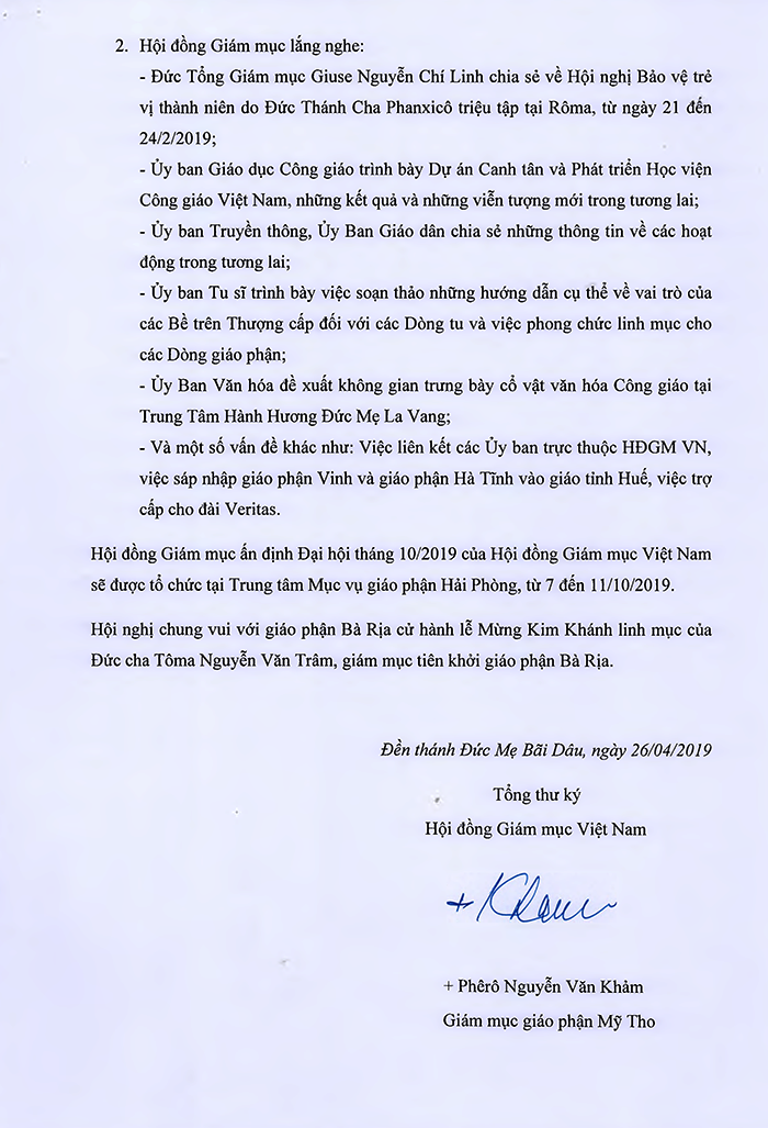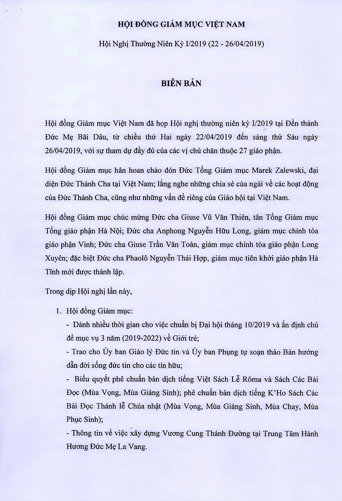 Sau đây là Biên bản Hội nghị thường niên kỳ I/2019 của HĐGM Việt Nam
