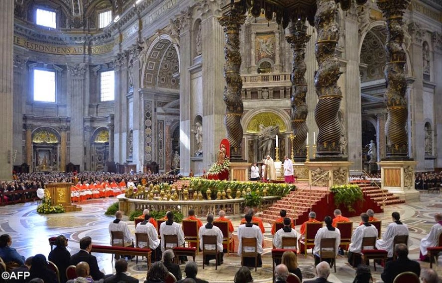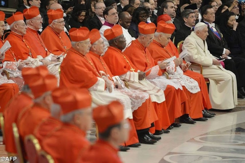 Lễ phong Hồng Y được cử hành dưới hình thức một buổi phụng vụ lời Chúa. Khi tiến lên bàn thờ chính, ĐTC đã đến chào Đức nguyên Giáo Hoàng rồi tiến tới trước Mộ Thánh Phêrô cúi mình, thinh lặng cầu nguyện.