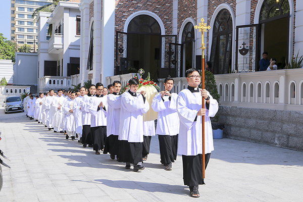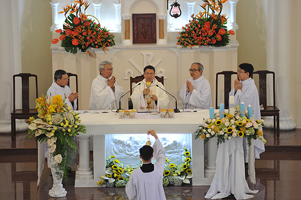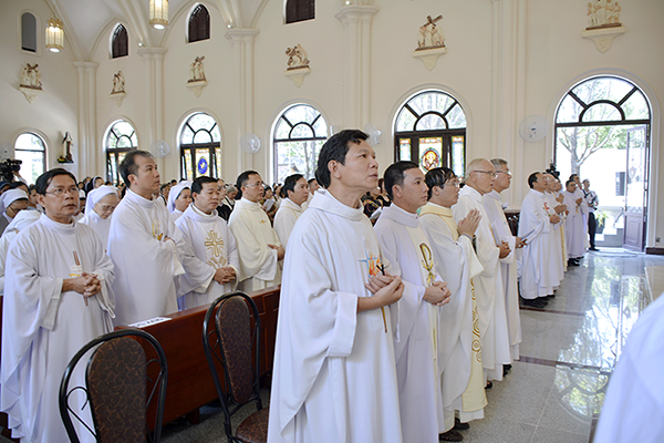 Chủ tế Thánh lễ là ĐGM Giuse Đỗ Mạnh Hùng - Giám quản TGP Sài Gòn. Đồng tế trong Thánh lễ có ĐGM Emmanuel Nguyễn Hồng Sơn và khoảng 50 linh mục. Tham dự Thánh lễ có đông đảo tu sĩ và tín hữu gần xa đến hiệp lòng cầu nguyện.
