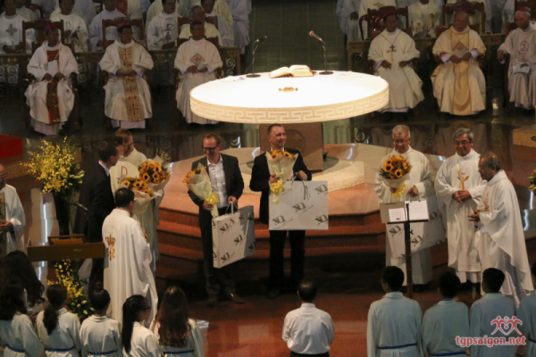 Trước Thánh lễ, Cha Tổng Đại diện Ignatio Hồ Văn Xuân giới thiệu với cộng đoàn phái đoàn khách quý: Đức Hồng Y Reinhard Marx - Tổng Giám mục Tổng giáo phận Munich cũng là Chủ tịch Hội đồng Giám mục Đức và là cố vấn của Đức Giáo hoàng Phanxicô; Cha Hans Langendörfer SJ - Thư ký Hội Đồng Giám mục Đức (HĐGM), Ông Matthia Kopp - người phát ngôn của HĐGM Đức, Ông Ulrich Pöner - Chánh văn phòng HĐGM Đức, Tiến sĩ Daniel Legutke - chuyên viên về nhân quyền của HĐGM Đức.