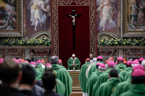 Sáng chúa nhật 24-2-2019, ĐTC đã chủ sự thánh lễ đồng tế bế mạc cuộc gặp gỡ tại Hội trường Regia rồi ngài cũng với các tham dự viên trở lại Hội trường Thượng HĐGM nơi diễn ra khóa họp và tại đây ĐTC đã đọc diễn văn bế mạc.