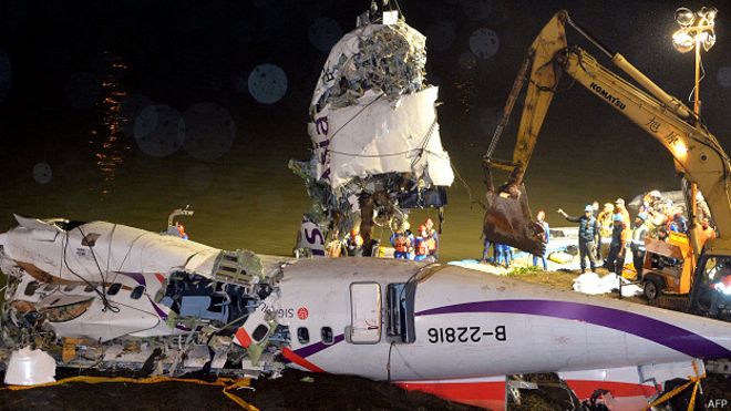Chuyến bay GE235 chở theo 58 hành khách và tổ lái – ít nhất 35 người đã thiệt mạng khi máy bay rơi xuống sông Cơ Long ở ngoại ô thành phố Đài Bắc.