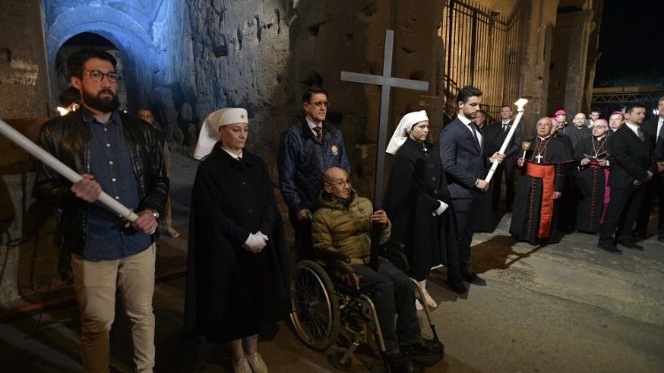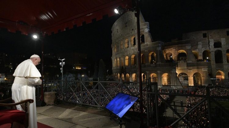 Lúc 9 giờ 15 phút tối thứ Sáu tuần Thánh, 19-4-2019, ĐTC Phanxicô đã chủ sự buổi đi đàng Thánh Giá trọng thể tại hý trường Colosseo ở Roma, trước sự tham dự của hơn 15 ngàn tín hữu, tay cầm ngọn nến sáng.