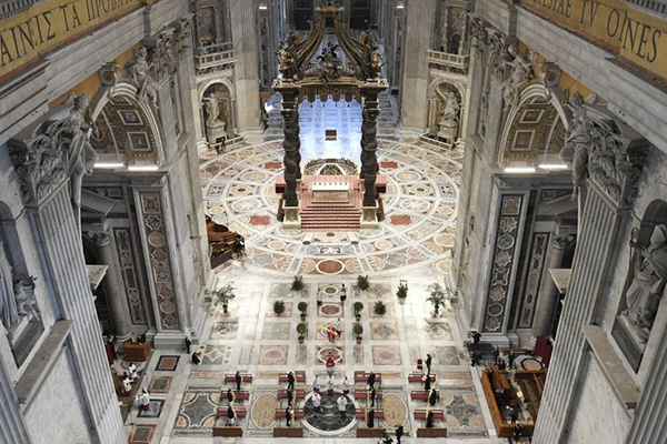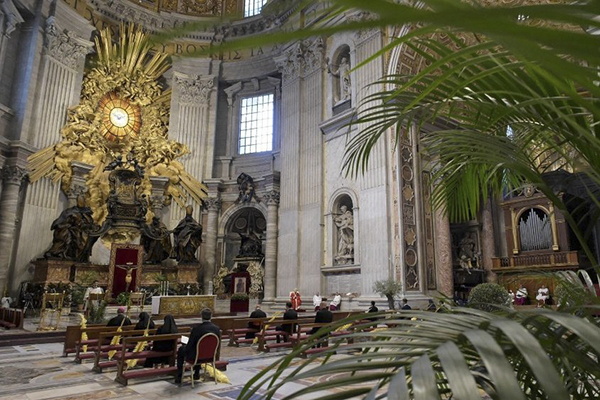 Do đại dịch virus corona, Thánh lễ được cử hành tại bàn thờ Ngai tòa thánh Phêrô, bên trong đền thờ, nghĩa là bàn thờ phía sau bàn thờ tuyên xưng đức tin và không có sự tham dự của giáo dân. Chúa nhật Lễ Lá 05/04 cũng là Ngày Quốc Tế giới trẻ lần thứ 35 được cử hành ở cấp giáo phận về chủ đề: “Này bạn trẻ, Ta bảo con: hãy chỗi dậy” (x. Lc 7,14).