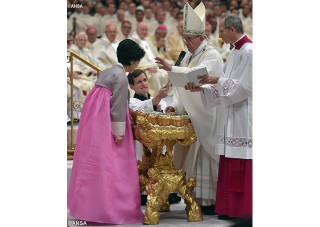 Đức Thánh Cha rửa tội 12 dự tòng, có Ông Bà Đại Sứ Hàn Quốc