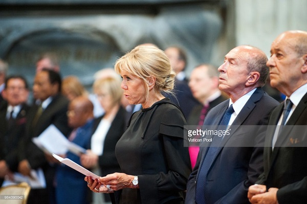 Sau hơn nửa tiếng đồng hồ hội kiến riêng ở lầu 3 của dinh Tông Tòa, phu nhân Brigitte và toàn tùy tùng của tổng thống đã vào chào và chụp hình lưu niệm với ĐTC. Trong dịp này Tổng thống đã tặng ĐTC cuốn sách ấn bản quí giá ”Nhật ký của một cha sở miền quê”, tác giả mà ĐTC ưa chuộng. Sau đó, Tổng thống và đoàn tùy cùng đã xuống lầu 1 để hội kiến với ĐHY Quốc vụ khanh, Pietro Parolin, có sự hiện diện của Đức TGM ngoại trưởng Paul Gallagher người Anh.