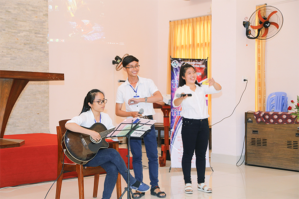 Tiết mục văn nghệ của các em sinh viên.
