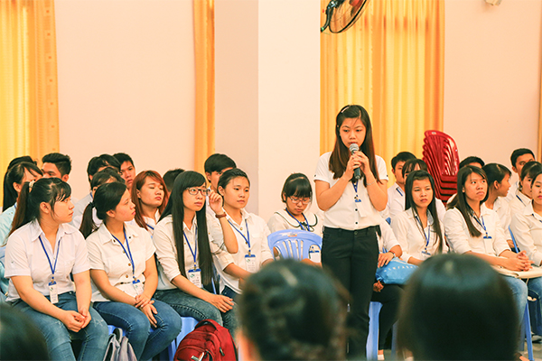 Một bạn sinh viên đặt câu hỏi với Ban Đại diện Giới DNCG.