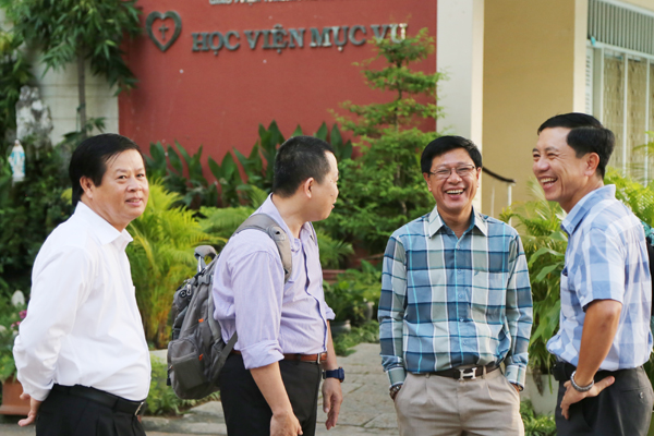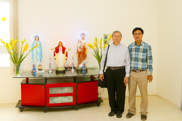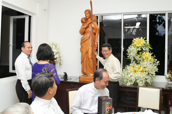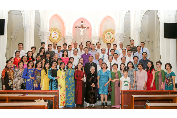 Ngài rất vui vì sự hiện diện của những khuôn mặt thân quen đã cùng cộng tác với ngài nhiều năm tại TGP Sài Gòn. Sau Thánh lễ, cả đoàn cùng chụp hình lưu niệm với Đức Cha Phêrô và dùng cơm tối tại Tòa Giám mục.