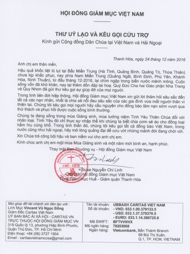 Hội đồng Giám mục Việt Nam: Thư uỷ lạo và kêu gọi cứu trợ các nạn nhân lũ lụt Miền Trung