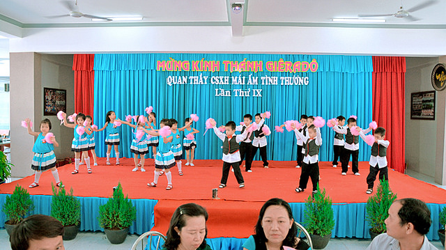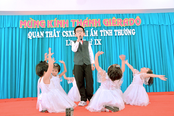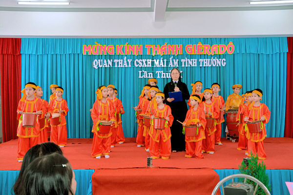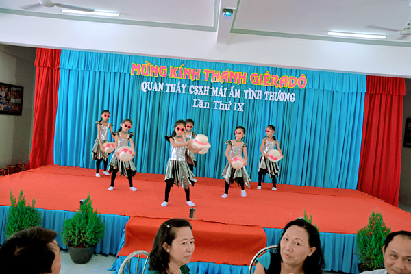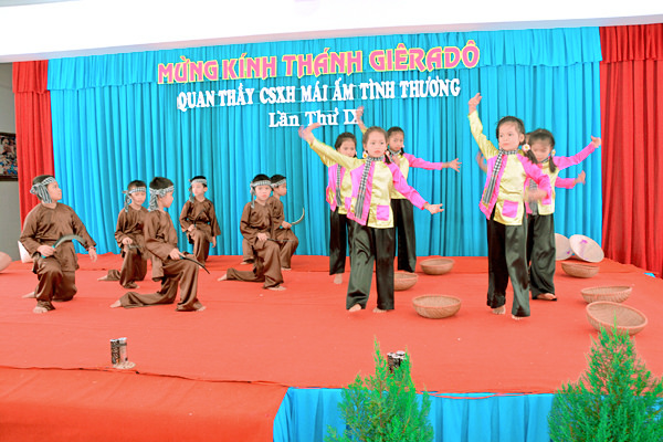 Chương trình văn nghệ giúp vui do các cháu cô nhi trình bày làm mọi người xúc động.