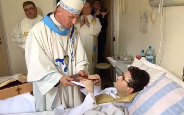 Một ứng sinh bị ung thư được đặt tay truyền chức Linh mục trên giường bệnh