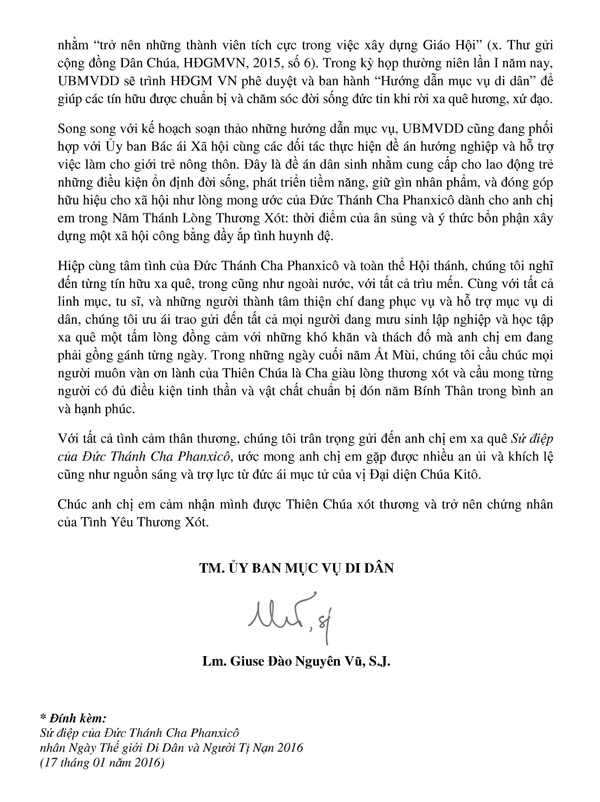 Ngày Thế giới Di dân và người Tị nạn lần thứ 102 Uỷ ban Mục vụ Di Dân: Thư gửi các tín hữu xa quê nhân Ngày Thế giới Di dân và người Tị nạn lần thứ 102 Share on: