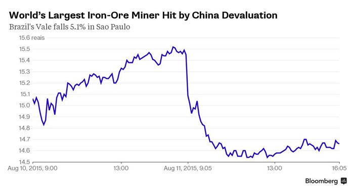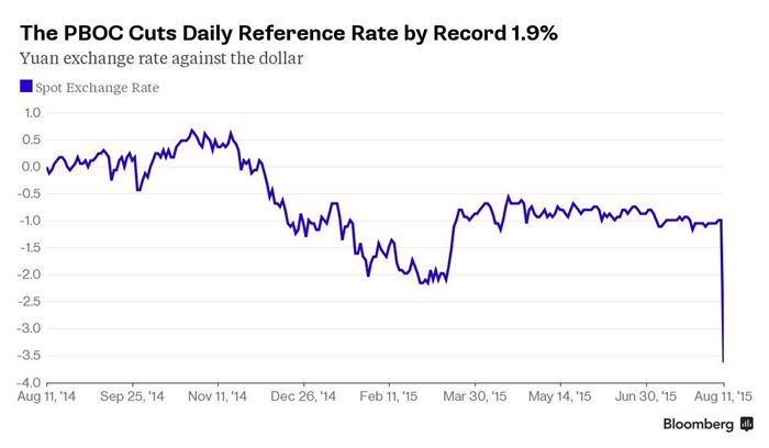 Hôm qua, người phát ngôn của PBoC giải thích rằng, điều chỉnh tỷ giá là một hành vi cải cách theo hướng thị trường, song các chuyên gia đều cho rằng, hành vi của Trung Quốc mở đầu cho một xu hướng giảm giá đồng tiền trong dài hạn để tăng sức cạnh tranh của ngành xuất khẩu đang èo uột của nước này. Hành vi phá giá đồng tiền 4% chỉ trong hai ngày cũng giáng một đòn mạnh vào các tài sản có tính rủi ro trên toàn cầu; cả chứng khoán, tiền tệ và hàng hóa chiến lược đều bị đẩy vào áp lực giảm giá sau động thái trên của Trung Quốc.
