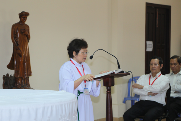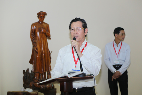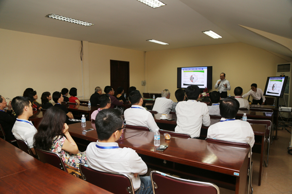 Thạc sĩ Lê Thanh Liêm - thành viên của Giới DNCG trình bày tóm lược chuyên đề "Đào tạo nguồn nhân lực trong Doanh nghiệp Công giáo",