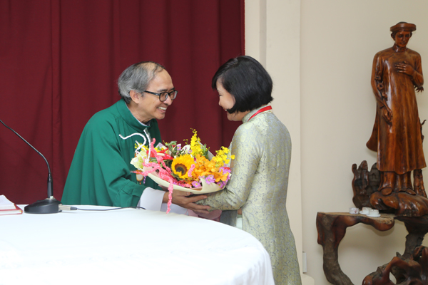 Đại diện Giới DNCG tặng hoa Cha Phêrô.