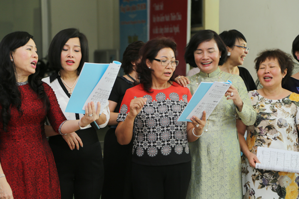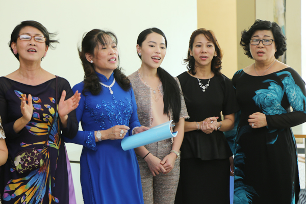 Các chị tranh thủ "tạo dáng" trước khi vào phòng họp.