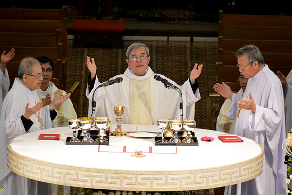 Đồng tế với ĐGM Louis có cha Tổng Đại diện Inhaxiô Hồ Văn Xuân, linh mục (LM) Giám đốc ĐCV Giuse Bùi Công Trác, LM Chưởng Ấn Kiều Công Tùng, quý cha giáo ĐCV và khoảng 150 linh mục.