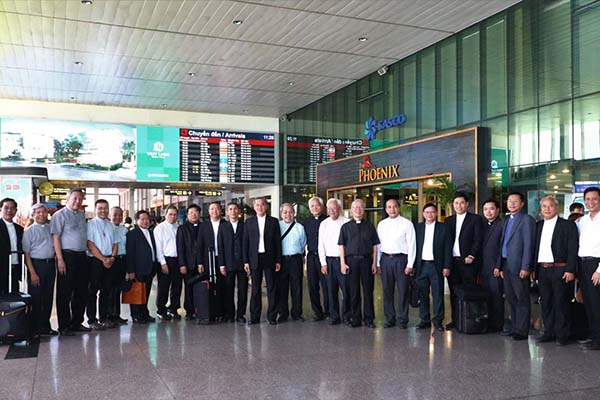 Đón Đức Tổng Giuse tại sân bay có Linh mục tổng đại diện Ignatio Hồ Văn Xuân và 11 linh mục trong Ban Tư Vấn của Tổng Giáo phận Sài Gòn.