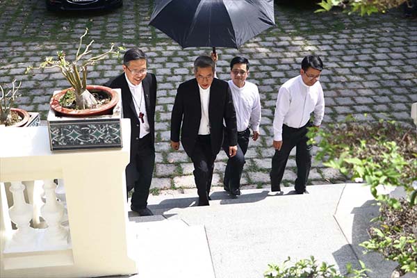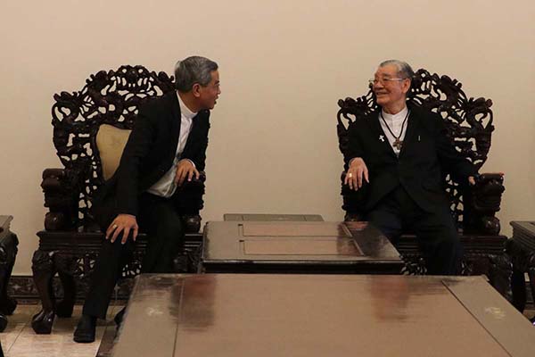 Đức Tân Tổng Giám mục được Đức Cha Giám Quản mời lên phòng khách của Tòa Giám mục, tại đây ngài đã chào Đức Hồng y Gioan Baotixita.