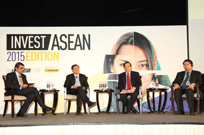 Các diễn giả thảo luận chủ đề "Việt Nam: công xưởng mới của thế giới" tại Hội nghị Đầu tư Invest ASEAN 2015 diễn ra tại TPHCM - Ảnh: Quốc Hùng