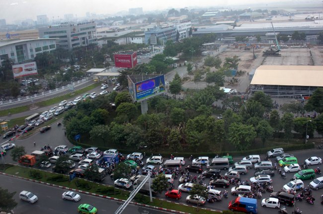 | Sân bay Tân Sơn Nhất không những quá tải bên trong mà giao thông dẫn vào sân bay cũng ùn tắc - Ảnh: Anh Quân |